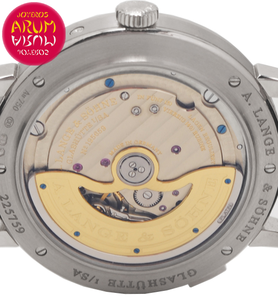 Other specifications :calibre L086.5, power reserve 72 hours, date, fast date push, moon phase, small seconds, transparent caseback, 18K gold buckle. Year 2017.