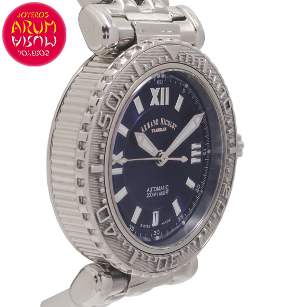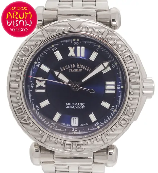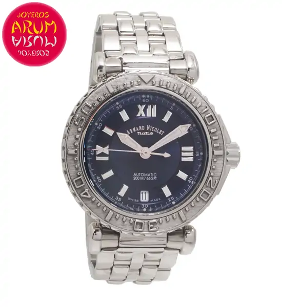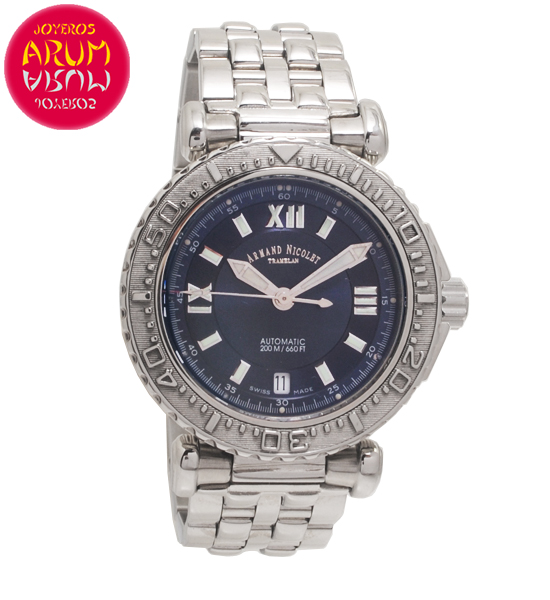 Other specifications :date at six, central seconds, luminous marks, rotating bezel, screw crown.
