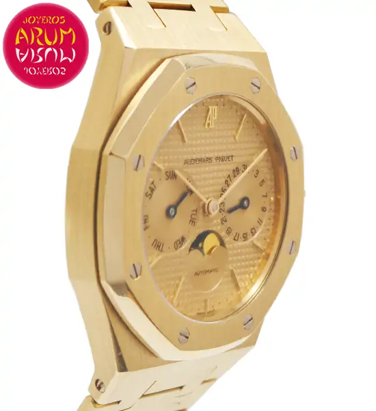 Other specifications :date and day, moon phase, 18K gold.