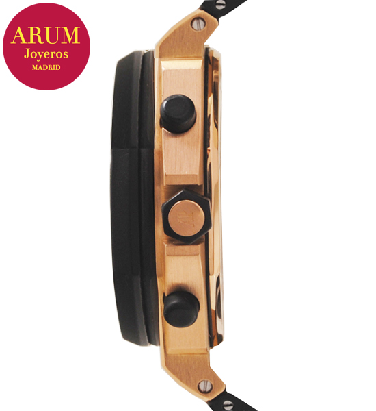 Other specifications :chronograph, date at three, small seconds at twelve, luminous marks, rubber screw bezel, 18K gold deployant.