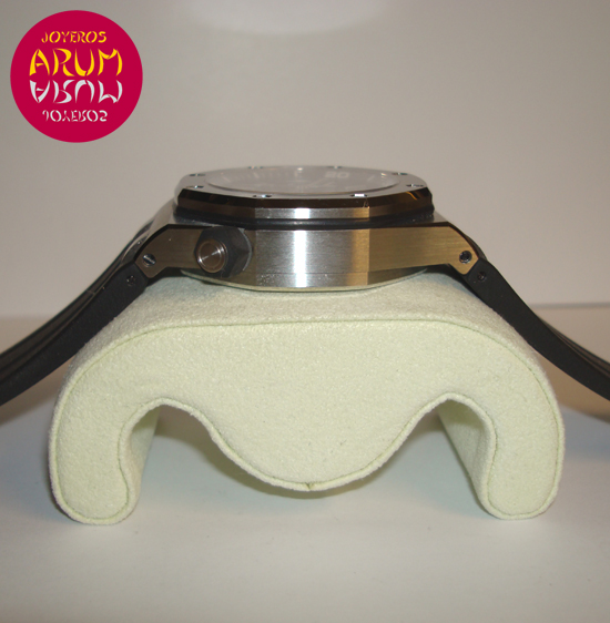Description :steel, octagonal screw bezel, black dial with grid, sapphire crystal, automatic movement, caliber 3120, central seconds, handles and dial indicators with luminescent, date at three, crown at right, auxiliary crown at ten to control the inner bezel, diameter 44 mm, waterproof 300 meters, rubber strap, steel buckle closure.