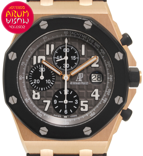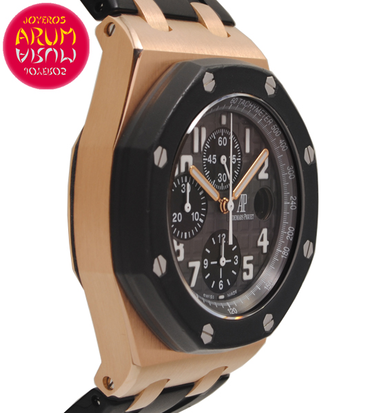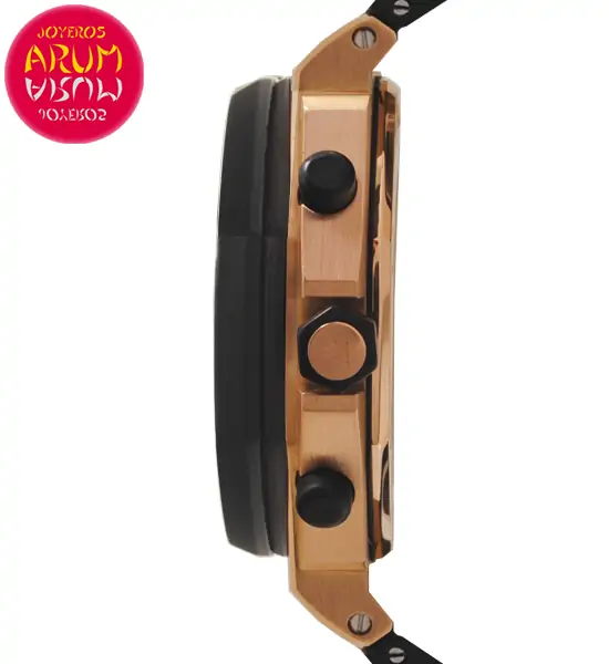 Other specifications :chronograph, date at three, small seconds at twelve, luminous marks, screw bezel, 18K gold deployant.