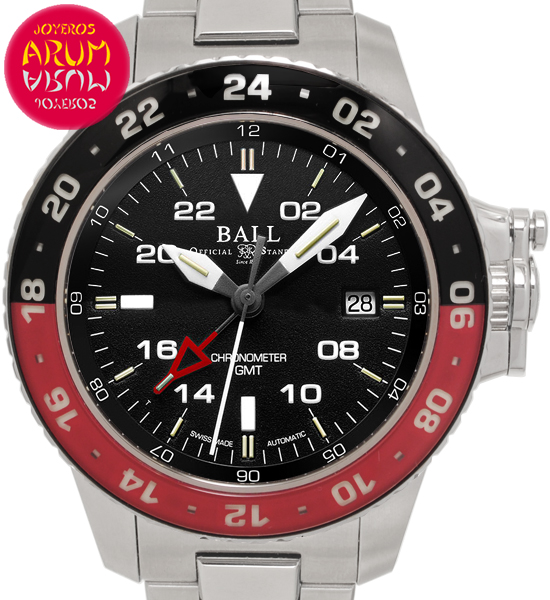 Other specifications :calibre Ball RR1201-C, GMT (second time zone), date at three, rotating sapphire bezel, micro gas tubes, antimagnetic, shock resistance, lock system crown patented by Ball. Year 2018.