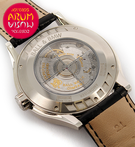 Other specifications :GMT function (second time zone), date, BMW logo, gas microtubes luminiscence, screw crown, tapa trasera transparente. With additional stainless steel Ball strap. Year 2013.
