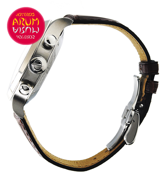 Other specifications :calibre BM148120, power reserve 48 hours, smooth bezel, chronograph, tachymetre, telemeter, date between four and five, small seconds at nine, minute counter at three, hour counter at six, luminiscence marks, transparent caseback. Year 2013.