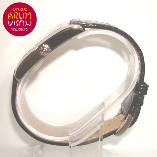 Description :steel, white dial, smooth bezel, sapphyre glass, quartz movement, screw crown, diameter 24 by 41 mm, water resistant 30 meters, black leather strap, buckle closure.