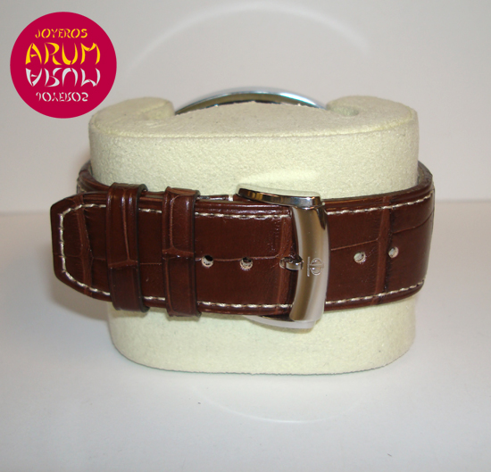 Description :steel, gray dial, smooth bezel, sapphire crystal, automatic movement, chronograph, two indicators on the dial, seconds and minutes, crown and two buttons to the right, diameter 45 mm, waterproof 30 meters, brown leather strap, buckle closure steel, year 2009.