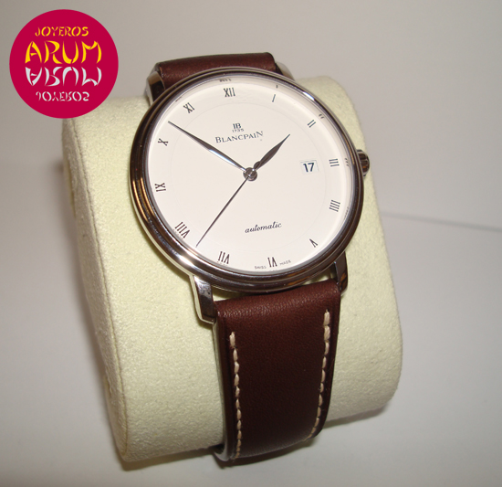 Description :steel, white dial with roman numerals, sapphire crystal, automatic movement, central second, date at three, 37.5 mm diameter, brown leather strap, steel buckle closure.