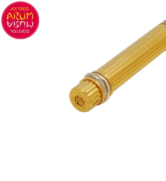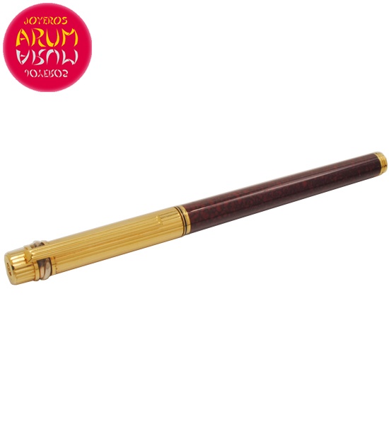 Descripción: Bolígrafo de la prestigiosa firma Cartier, realizado en metal dorado y laca. La medida es de 13,5 cm.
