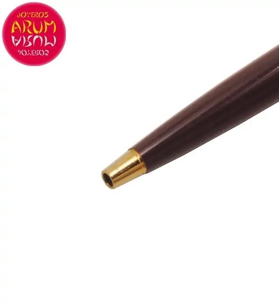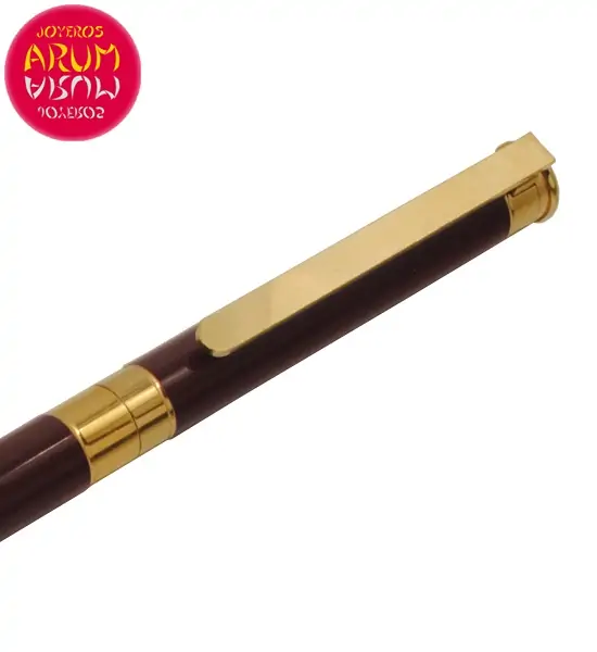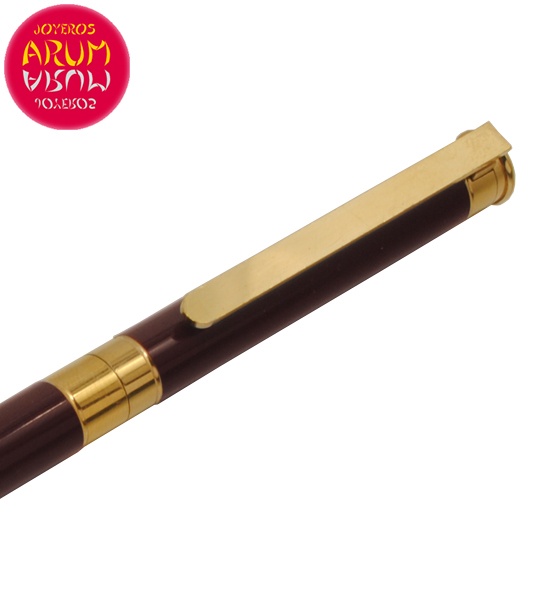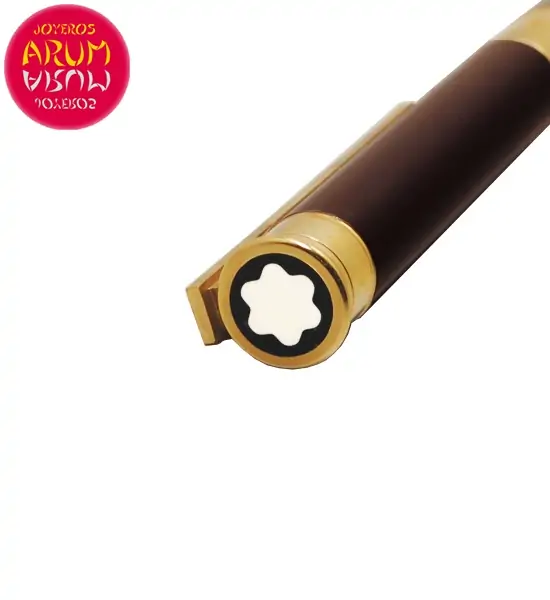Descripción: Bolígrafo de la prestigiosa firma Montblanc realizado en laca bureos y metal bañado en oro. Capuchón coronado por la emblemática estrella de Montblanc. La medida del bolígrafo es de 14 cm.