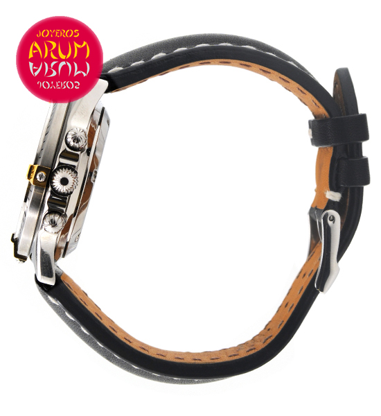 Other specifications :rotating bezel in both directions, chronograph, small seconds at nine, minute counter at three, hour counter at six, luminiscence marks, original Breitling strap and buckle.
