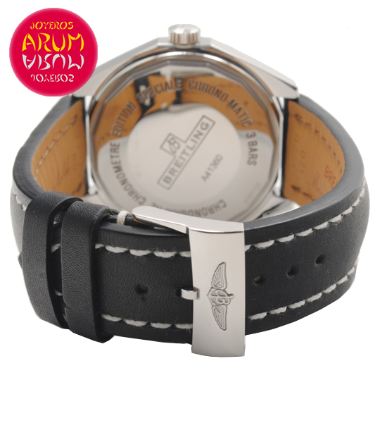 Other specifications :calibre Breitling 41LC, power reserve 42 hours, left crown, rotating bezel, chronograph, date at six, small seconds at three, minute counter at nine, luminiscence.