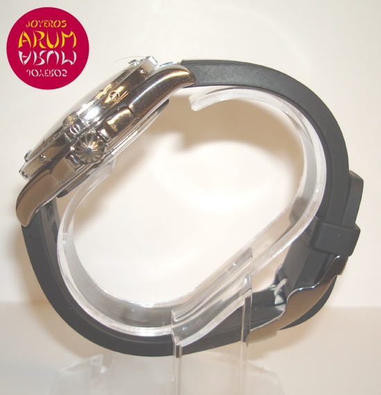 Description :steel, gray dial, rotating bezel, sapphire crystal, automatic movement, center seconds, luminescent indicators, date at three, screw crown, diameter 40 mm, waterproof 300 meters, rubber strap, buckle closure, year 2012.