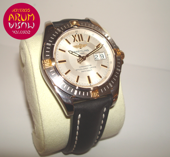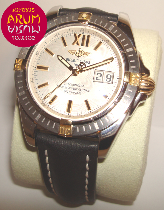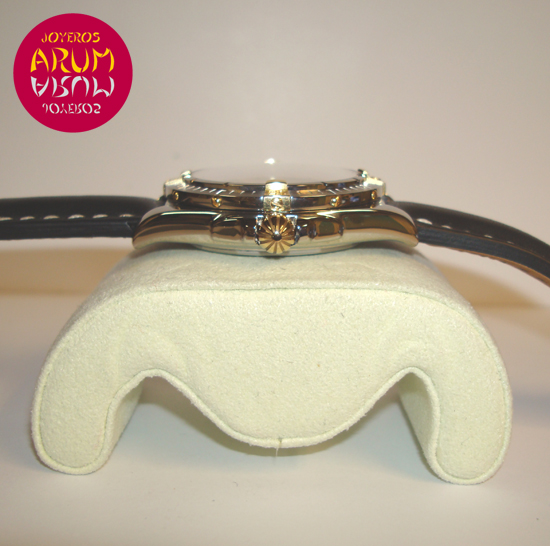 Description :steel and yellow gold, white dial, rotating bezel, sapphire crystal, automatic movement, center seconds, luminescent handles, date at three, screwed crown, diameter 41 mm, water resistant 300 meters, black leather strap, buckle closure.
