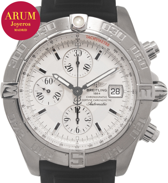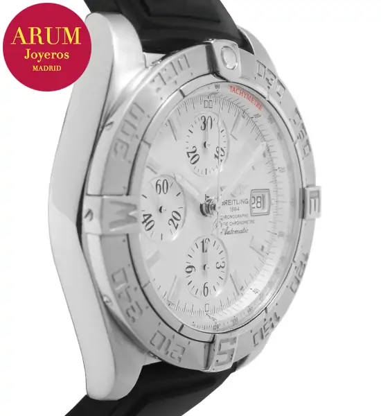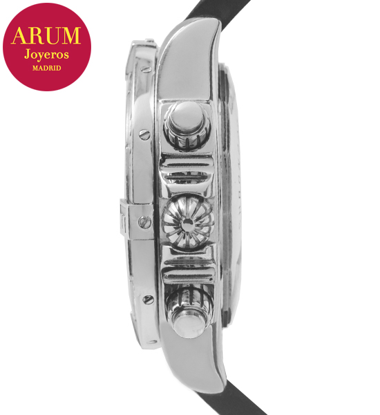 Other specifications :chronograph, tachymetre, date, small seconds, luminous marks, rotating bezel, screw crown.