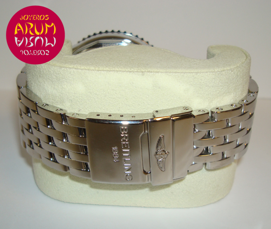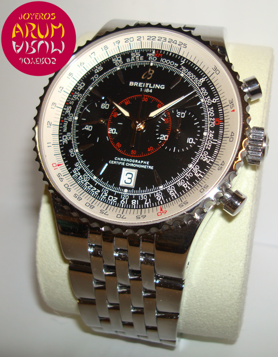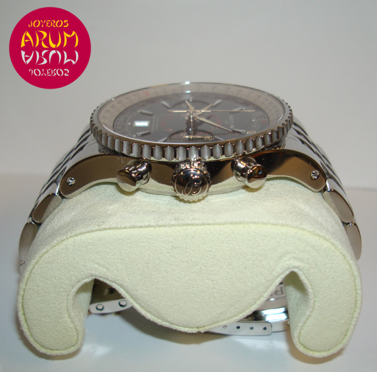 Description :steel, black dial, sapphire crystal anti-reflective, automatic movement, power reserve of 42 hours, chronograph, small seconds, navigation rules, date at six, 47 mm diameter, crown and two buttons, waterproof 30 meters, steel strap , steel folding clasp, year 2008.