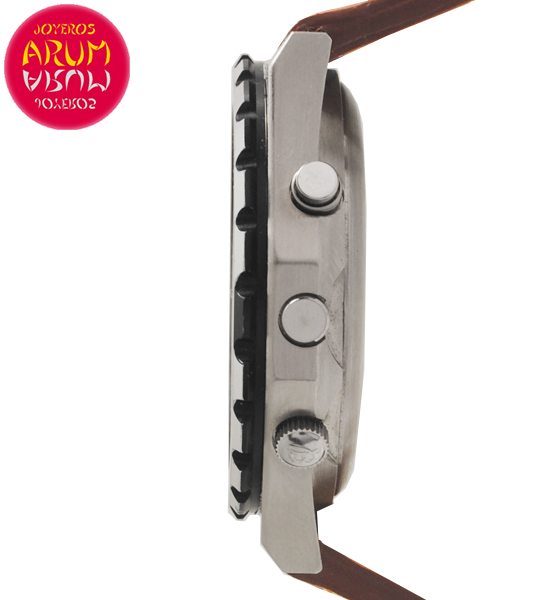 Other specifications :chronograph with split seconds, minute counter at six, hour counter at nine, date and crown at four, slide rules, luminous marks, rotating bezel.