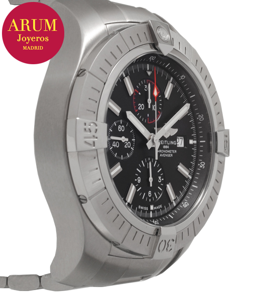 Other specifications :calibre Breitling 13, power reserve 48 hours, chronograph, date, small seconds, luminous marks, screw crown, rotating bezel.