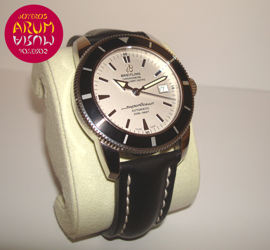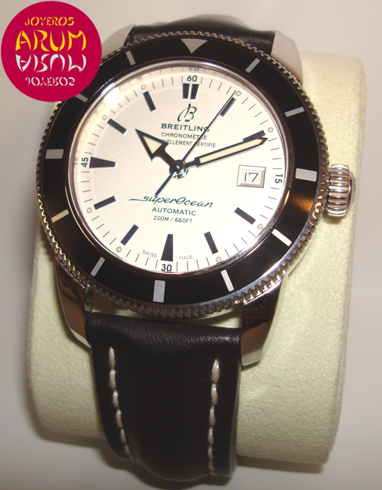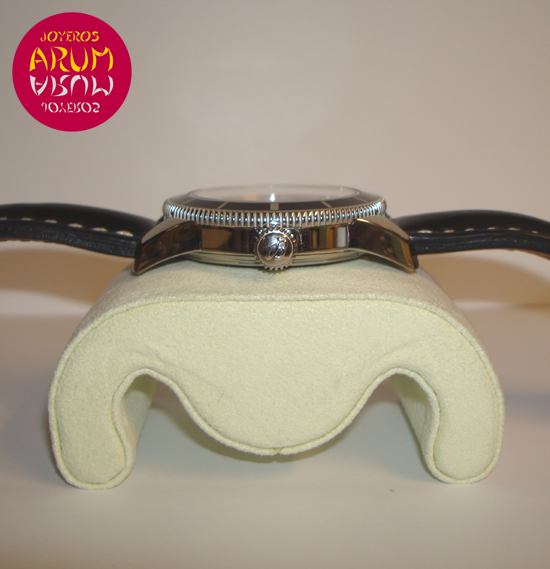 Description :steel, white dial, rotating bezel, sapphire crystal, automatic movement, center seconds, luminescent handles, date at three, screw crown, waterproof 200 meters, diameter 42 mm, black leather strap, steel buckle closure, year 2011.