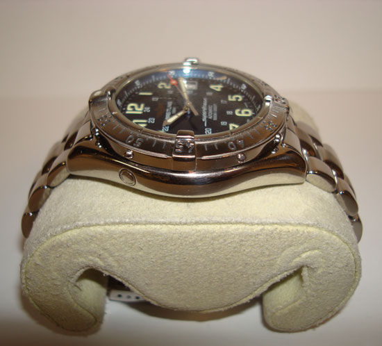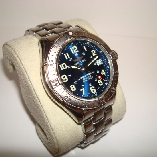 Description :steel, blue dial, rotating bezel, sapphire crystal, automatic movement, center seconds, luminescent dial and handles, date at three, submersible 1000 meters, screw crown, diameter 40 mm, steel strap, folding clasp.