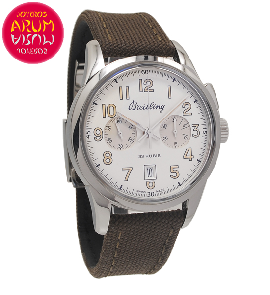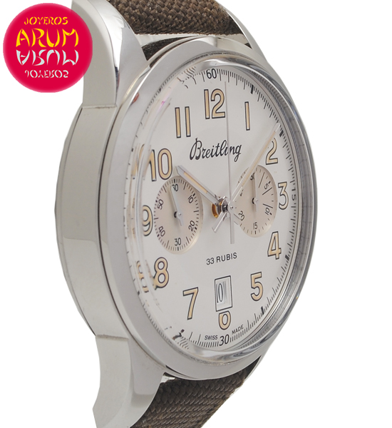 Other specifications :calibre Breitling 14, power reserve 70 hours, chronograph, date at six, small seconds at nine, luminous marks, transparent caseback. Year 2016.