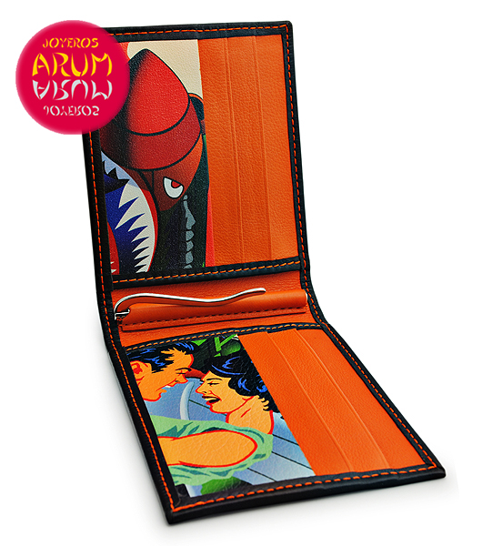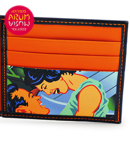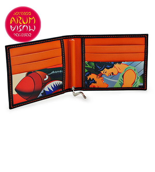 Product: Breitling wallet made in brown and orange leather with vintage cartoons. The wallet have six compartiments for cards and have external box, both with Breitling logotipe.