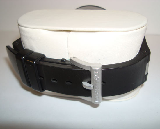 Description :aluminum case, sapphire crystal, automatic movement, bezel with Bulgari letters, white dial, 3 indicators on the dial, seconds, minutes and hours, chronograph, date, screw crown and two buttons, diameter 38 mm, rubber strap aluminum, aluminum buckle closure.