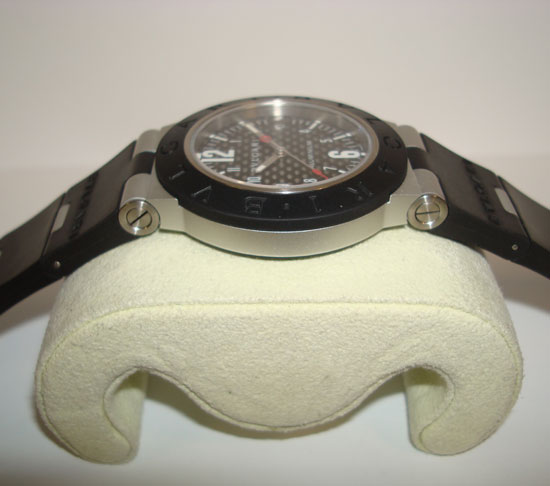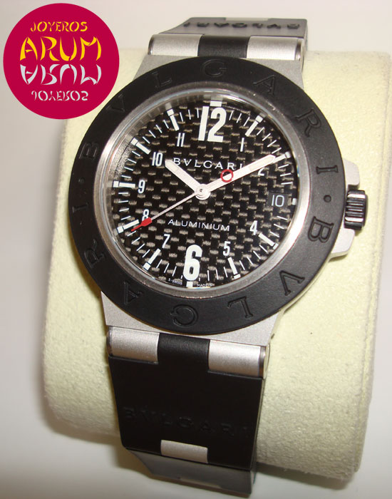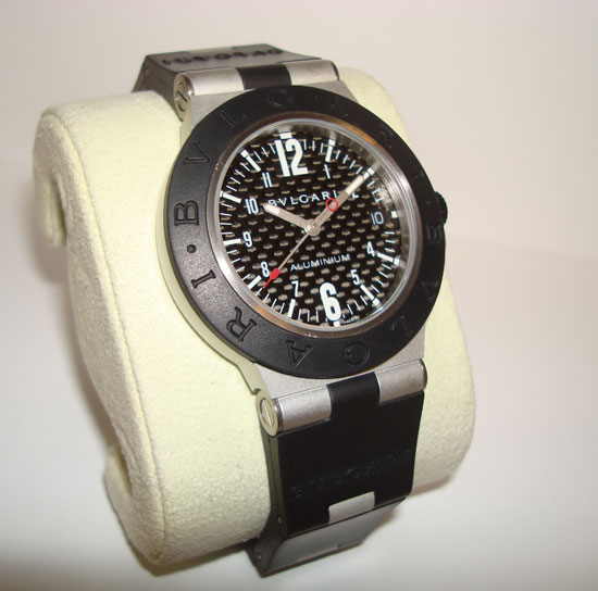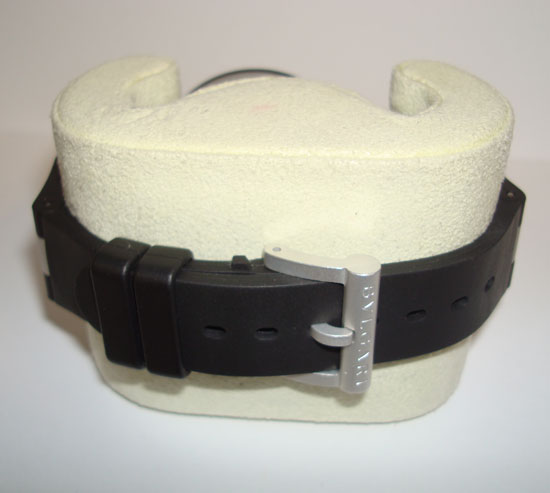 Description :aluminium, black dial, rubber bezel, sapphire crystal, automatic movement, center seconds, luminescent handles and dial, date at three, black aluminum crown, diameter 38 mm, rubber strap, aluminum buckle closure.