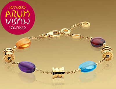 Description: Bulgari bracelet in yellow gold 18K, with rhodolite garnet, amethyst, blue topaz, citrine quartz.