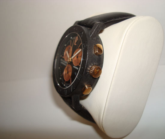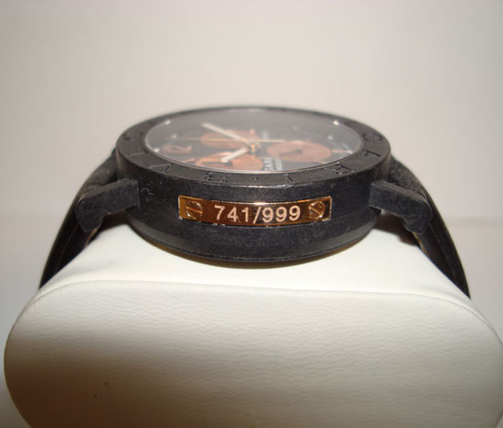 Description :limited edition to 999 pieces for city (Madrid 741/999), carbon and rose gold, sapphire crystal, quartz movement, chronograph, luminescent handles, date, screw-down crown and two buttons, diameter 38 mm, black leather strap, buckle closure .
