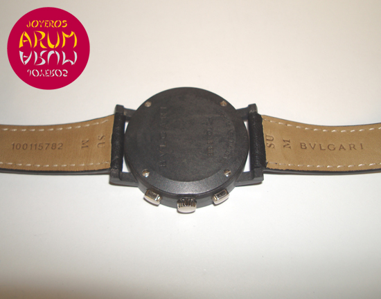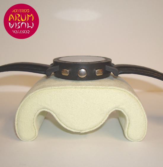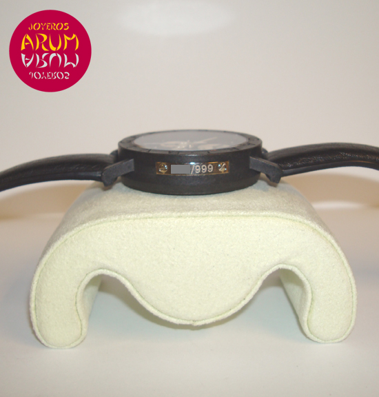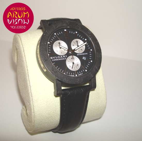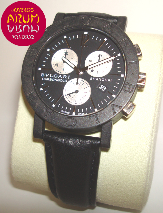 Description :limited edition of 999 pieces by city, city of Shanghai, carbon and white gold, black dial, sapphire crystal, quartz movement, chronograph, three indicators on the dial, seconds, minutes, hours, date at four, diameter 38 mm, crown and two buttons at right, black leather strap, buckle closure, year 2006.
