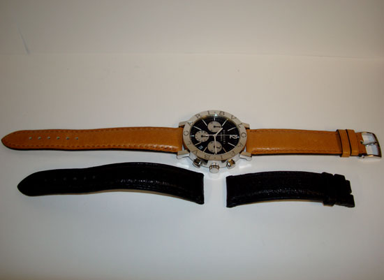 Description :steel, bezel engraved with letters Bulgari, sapphire crystal, automatic movement, chronograph, three indicators in the dial, seconds, minutes and hours, handles with luminescent indicators, date, screw crown and two buttons, 38 mm diameter, includes two straps, black leather and brown leather, steel buckle closure.