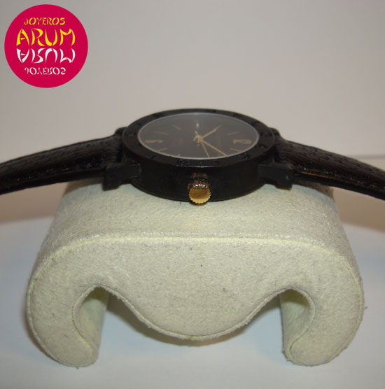 Description :limited edition to 400 units per city, Carbon, black dial, bezel with Bulgari letters, sapphire crystal, automatic movement, central second, date at three, diameter 34 mm, screw crown, transparent caseback, leather strap, buckle closure .