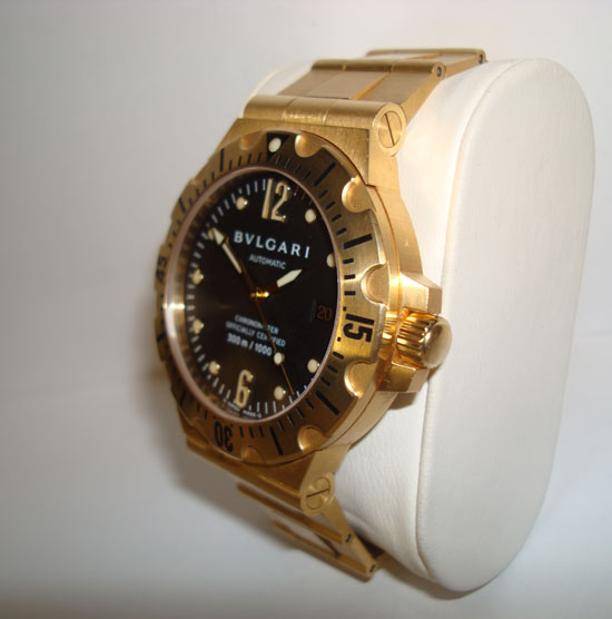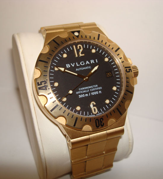 Description :yellow gold, black dial, sapphire crystal, automatic movement, center seconds, luminescent handles and dial, date at 3, rotating bezel, screw crown, diameter 40 mm, waterproof 300 meters, yellow gold strap, hidden folding clasp.
