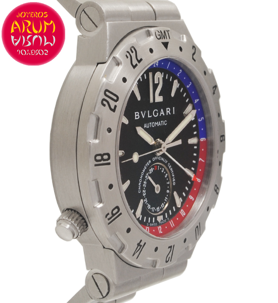 Other specifications :GMT, date at six, central seconds, luminous marks, rotating bezel.