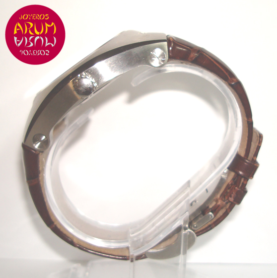 Description :steel, white dial, sapphire crystal, automatic movement, central seconds, date at three, luminescent handles, screw crown, diameter 40 mm, waterproof 100 meters, brown leather strap, folding clasp, year 2010.