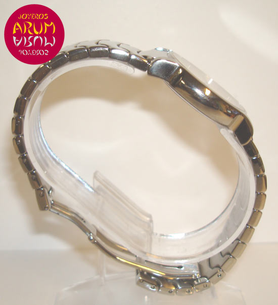 Description :ladies watch, steel, white dial, sapphire crystal, quartz movement, date at three, right crown, diameter 25 mm, steel strap, hidden folding clasp.