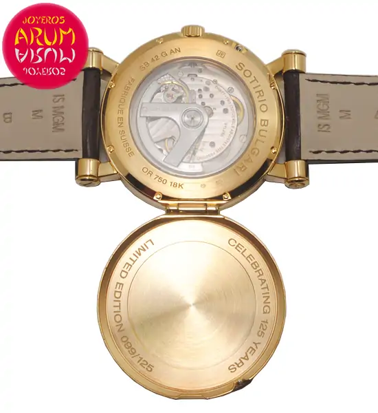Other specifications :tribute to Sotirio Bulgari, 125 anniversary edition limited to 125 pieces, date at three, central seconds, 18K gold buckle.