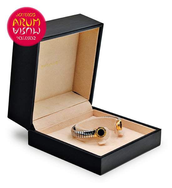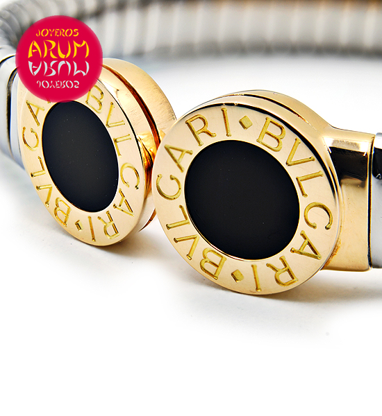 Description: Bulgari Tubogas bracelet made in steel, 18K yellow gold and onyx.