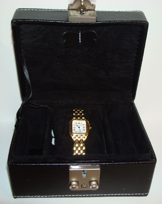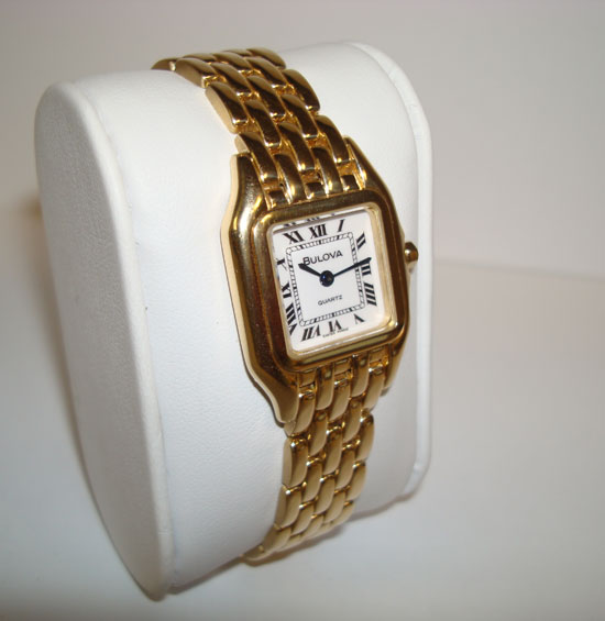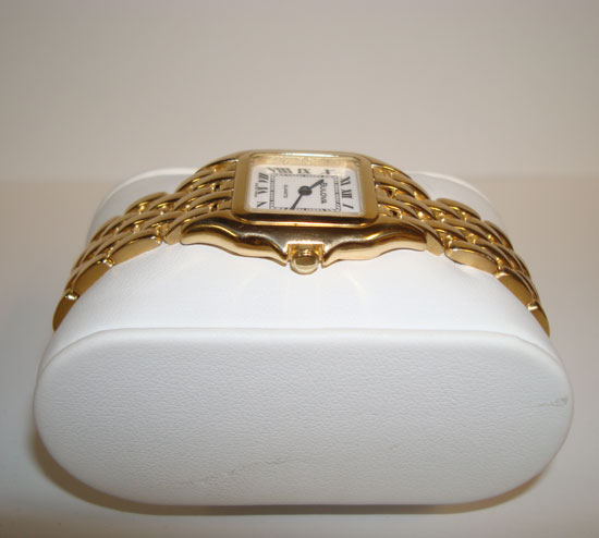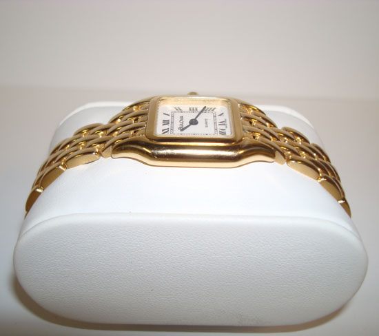 Description :lady watch, yellow gold, white dial with roman numerals, sapphire crystal, quartz movement, diameter 22 mm, yellow gold strap, hidden folding clasp.
