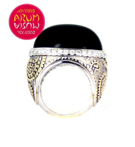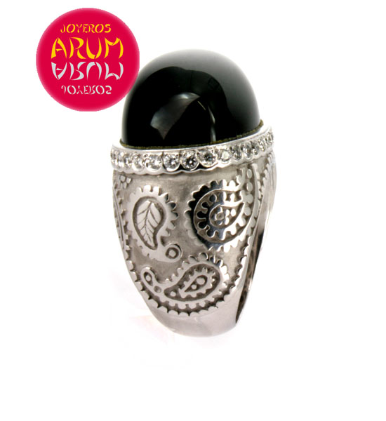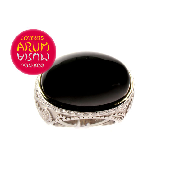 Product: Carrera y CarreraARUM Reference: RAJ160Material: White Gold 18 KDescription: Carrera y Carrera ring realized in 18 K white gold with brilliants and onix.Size:15 – 55
