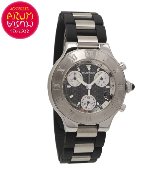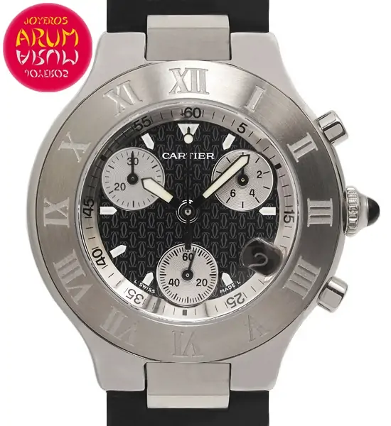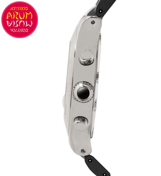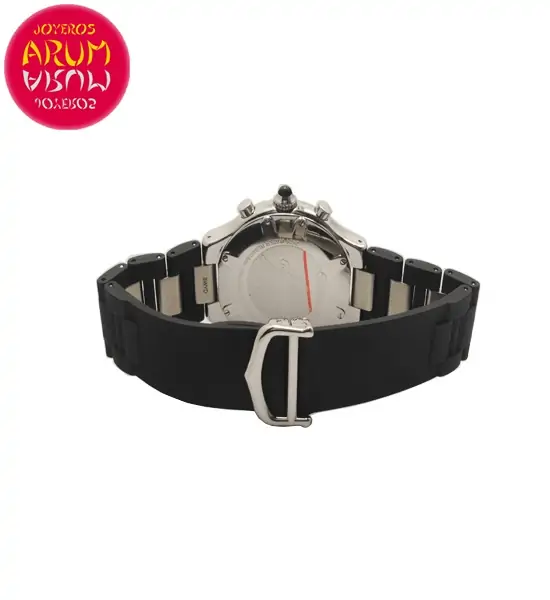 Otras especificaciones :cronógrafo, fecha a las cuatro, lupa en la fecha, segundero pequeño a las seis, marcas luminiscentes, bisel grabado con números romanos. Año 2007.