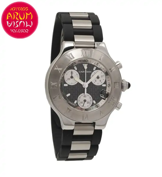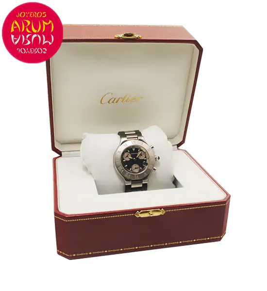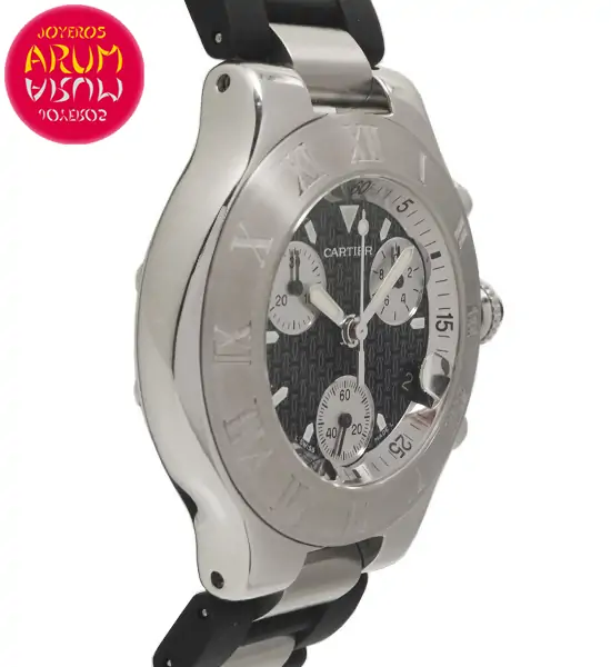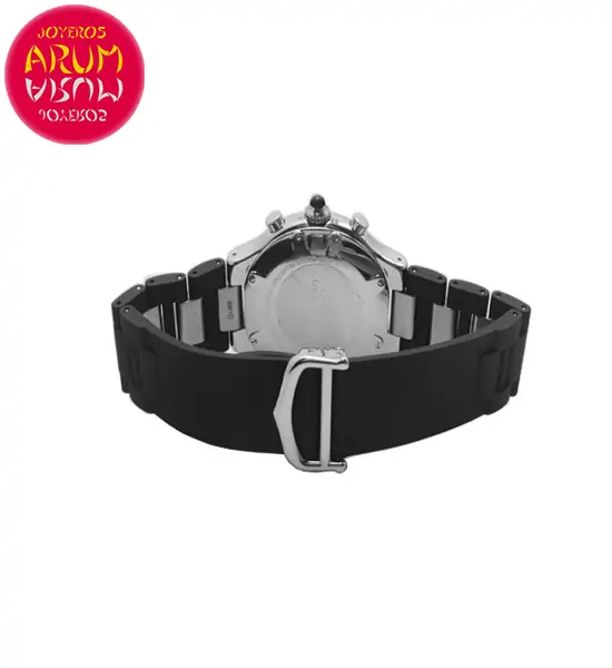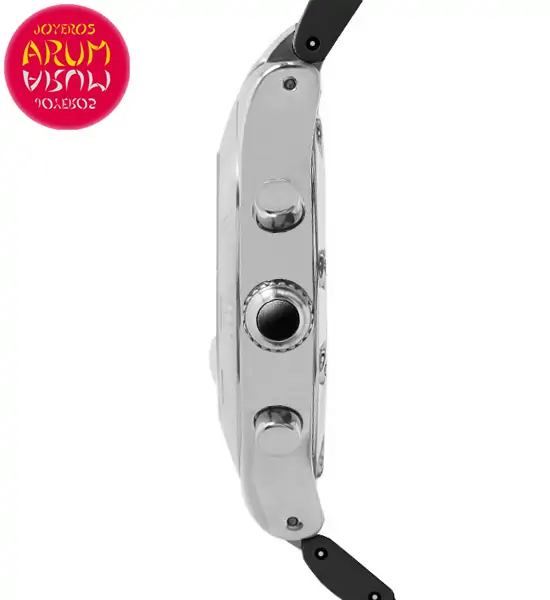 Otras especificaciones :cronógrafo, fecha a las cuatro, lupa en la fecha, segundero pequeño a las seis, marcas luminiscentes, bisel grabado con números romanos.