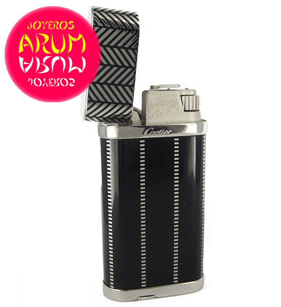 Product: Cartier Lighter Chevrons DecorReference: CA120171ARUM Reference: RA3103Material:. Black lacquer and paladium.Size: 60 mm – 29 mmWith Cartier papers and box.