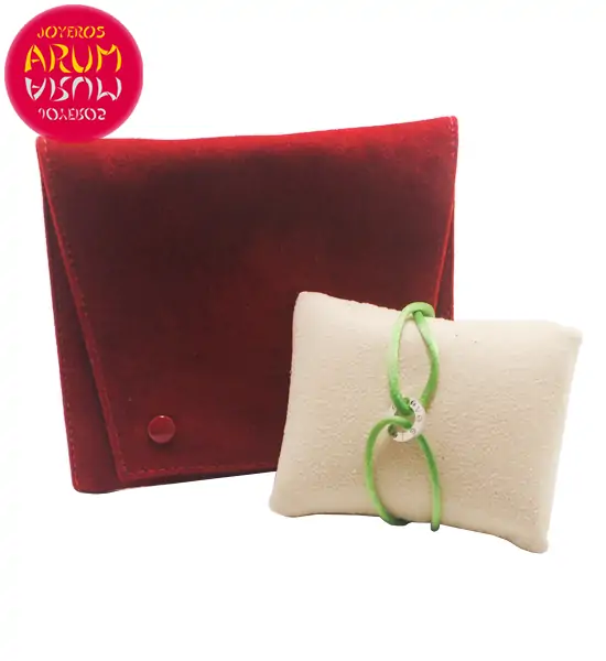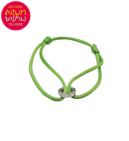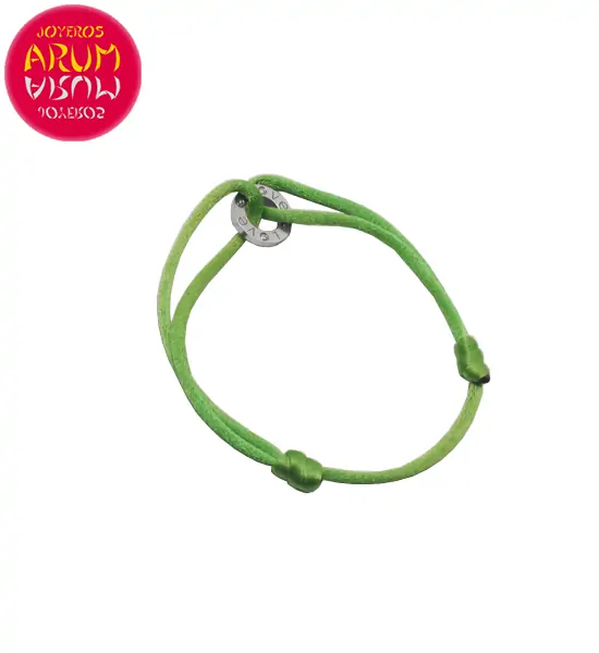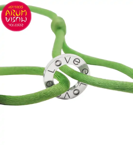 Description: Cartier Love bracelet made in 18K white gold and two diamonds with green leather cord.