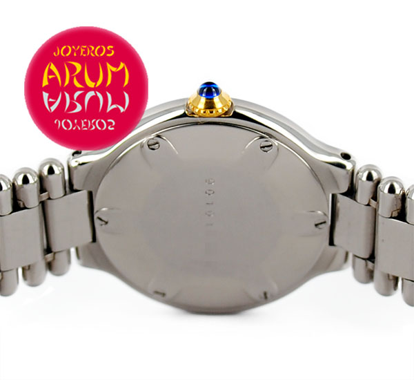 Other specifications :lady´s watch, blue steel hands, crown decorated with a spinel.