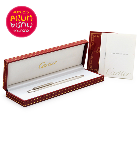 Description: Cartier Must II Ballpoint made in silver plaque, clip decorated with Cartier double C, rotating system. Size 12,5 cm.
