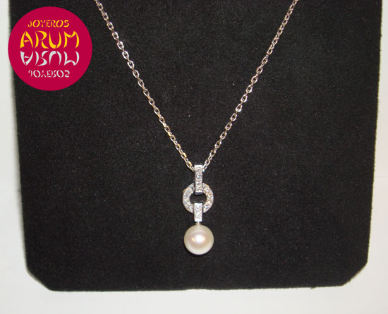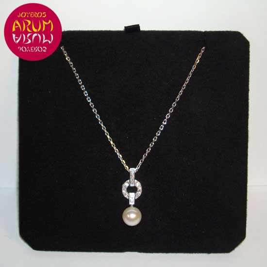 Product: Cartier Necklace with PearlReference: B3038400Description: Necklace in white gold 18K with brilliants and grey pearl. Signed by Cartier.Includes: Original Box