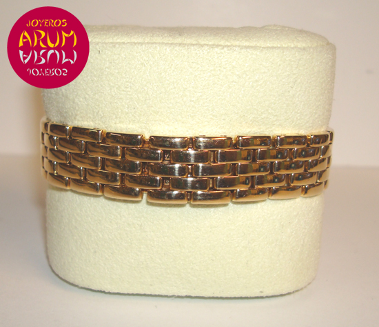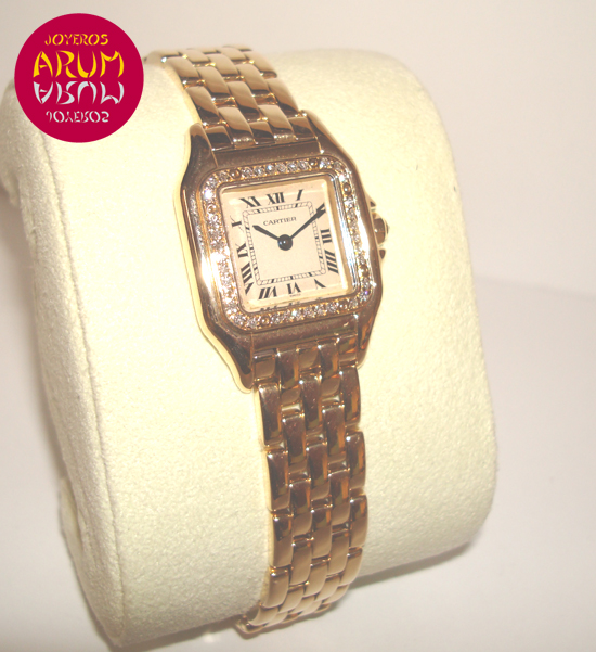 Description :ladies watch, yellow gold, diamonds on the bezel, beige dial with roman numerals, sapphire crystal, quartz movement, crown decorated with a brilliant, diameter 32 mm, yellow gold strap, hidden folding clasp.