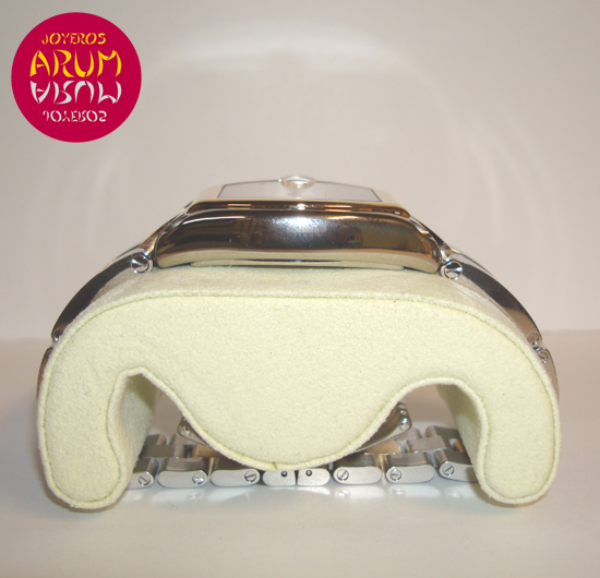 Description :steel and yellow gold, silver dial with Roman numbers, sapphire crystal, automatic movement, handles and luminescent dial, center seconds, date with magnifying glass at three, crown at right, diameter 36 mm, waterproof 30 meters, steel strap and yellow gold, hidden folding clasp.